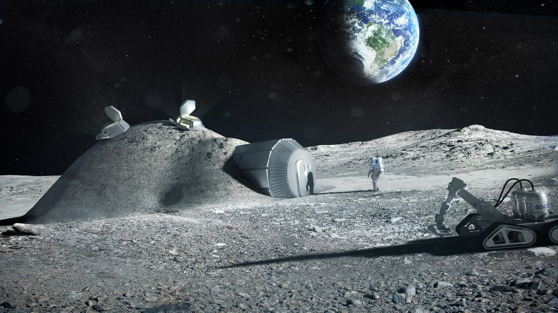 ESA’s concept of a 3D-printed lunar base with a dome designed by architects Foster + Partners.